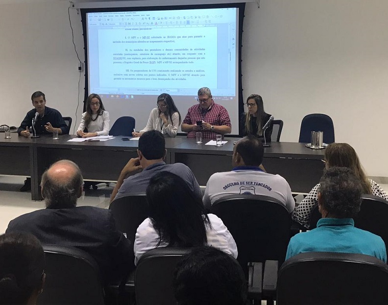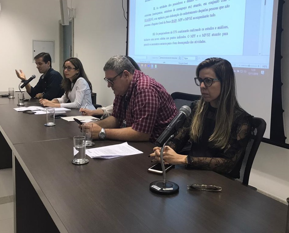 O Ministério Público do Estado de Sergipe (MPSE) e o Ministério Público Federal em Sergipe (MPF/SE) se reuniram nesta terça-feira, 12, com comunidades pesqueiras, atingidas pelo derramamento de óleo, para estudar medidas necessárias para incluir os trabalhadores afetados no Estado como beneficiários da Medida Provisória anunciada pelo Governo Federal, ainda nesse mês. Participaram das discussões representantes da Universidade Federal de Sergipe, da Vigilância Sanitária e da Secretaria de Estado da Agricultura e Desenvolvimento Rural (Seagri). Conduziram a reunião: os procuradores da República Martha Figueiredo e Ramiro Rockenbach e a promotora de Justiça e assessora da Coordenadoria Geral do MPSE, Cláudia Calmon.